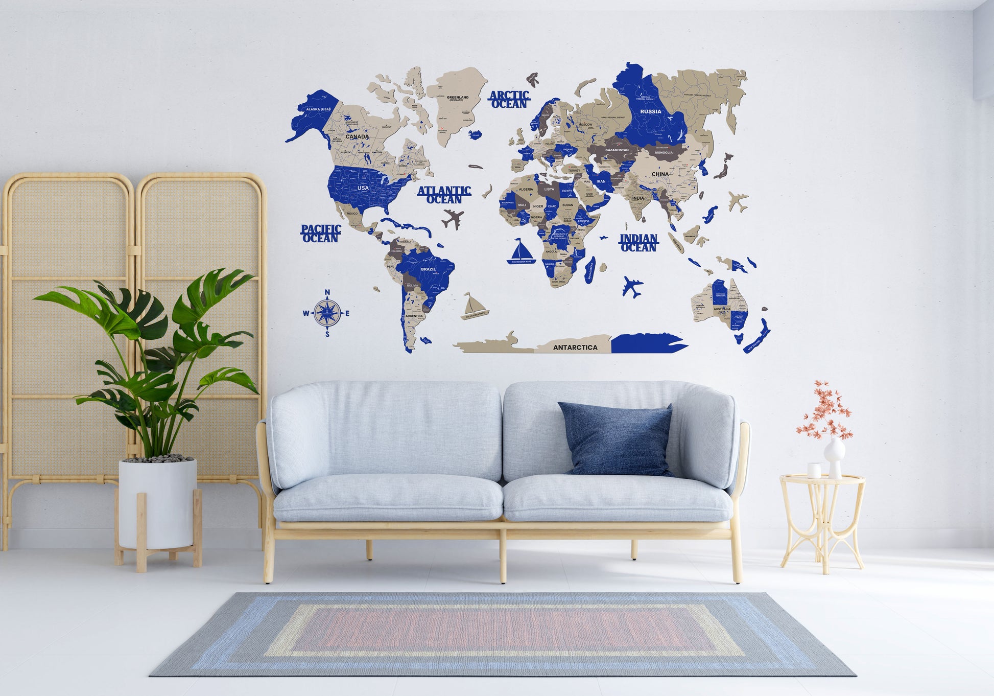 3D BLUE WOODEN WORLD MAP | BEST FOR TRAVELLER | HOME DECOR | WALL DECOR WM007