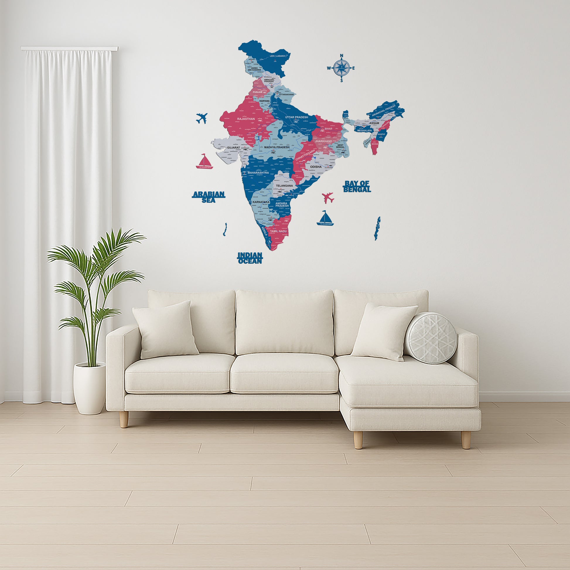 INDIA WOODEN 3D MAP | PINK BLUE MAP FOR OFFICE | HOME | WALL DECOR IM006