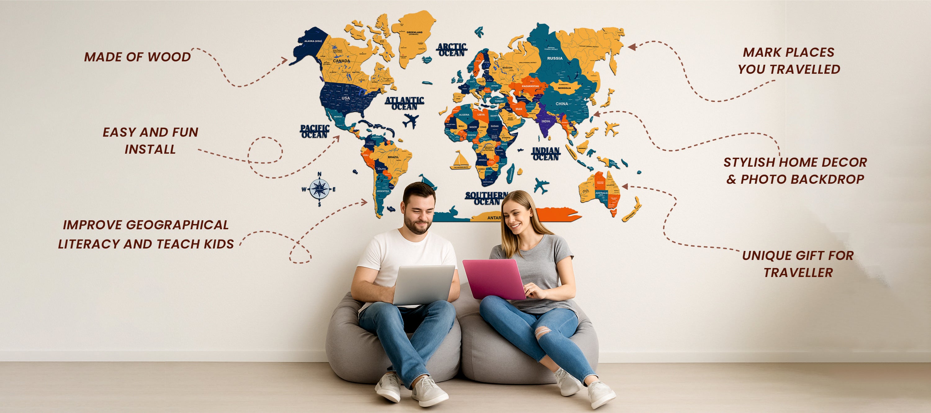 3D PANTONE WOODEN WORLD MAP | BEST FOR TRAVELLER | HOME DECOR | WALL DECOR WM008